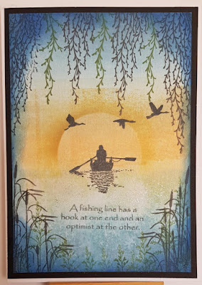 I started by brayering a background, then using an Inkylicious create a scene set I started to stamp the scene using versaclair inks. I built the foliage up with some Lavinia stamps. There is some sparkle on the water which I did with some SprinkleITS, but hasn't been picked up on camera.