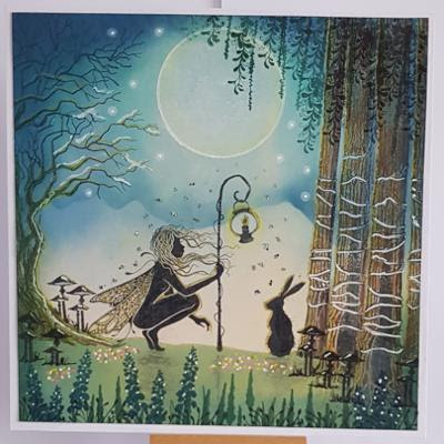 Fantasy And Magical' As with all my scene style cards I started with the background, using Distress Inks and creating a moon. I then placed my fairy and Hare, grounded them and then went on to build the scene. And of course some sparkle, you can't have a fairy without that sparkly fairy dust.